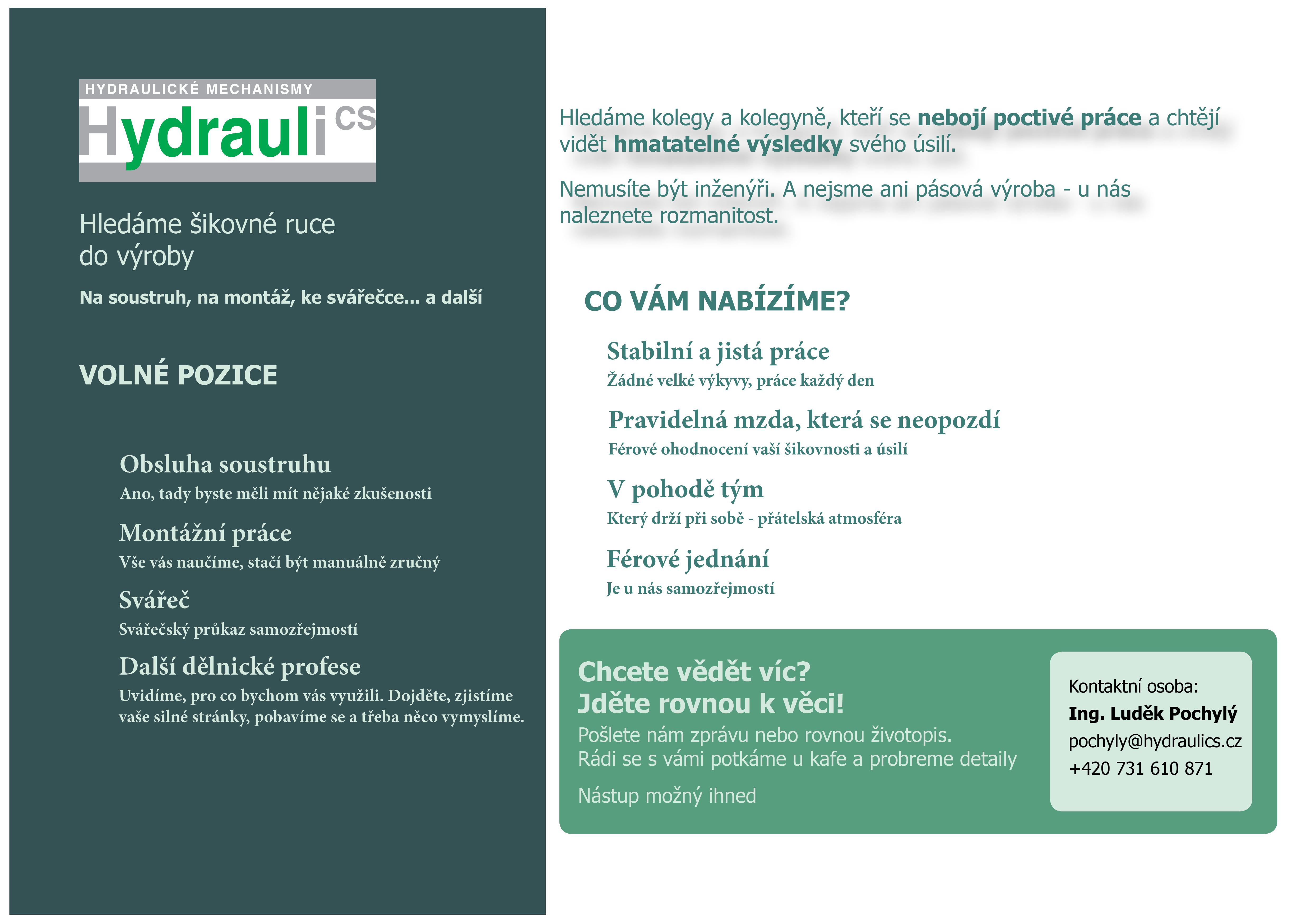 - práci ve stabilní a neustále se rozvíjející společnosti